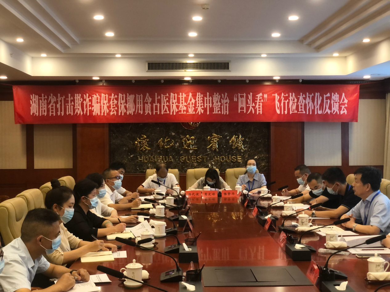 8月29日,湖南省打击欺诈骗保套保挪用贪占医保基金集中整治“回头看”飞行检查怀化反馈会议召开。会议由怀化市人民政府副秘书长丁琼主持会议,飞检组组长、株洲市医疗保障事务中心副主任、四级调研员王凯强及相关检查组成员,市医保局主要负责人、分管负责人、市医保中心主任、相关科室负责人,鹤城区、中方县、芷江县医保局主要负责人及四家被检医药机构负责人参会。