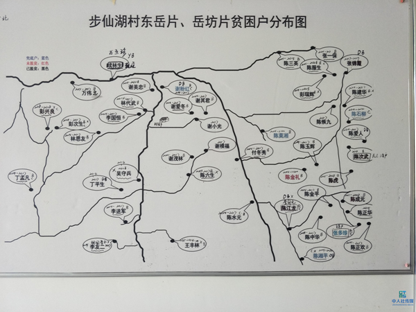 “绿色标注是已经脱贫,红色标注是还没有脱贫,蓝色标注就是兜底户。”贺建新兴奋地向记者介绍,还有因病致贫的贫困户标B,残疾贫困户就标C。“ 有了这张图,我们对全村贫困户家庭情况就一目了然了,这张图也受到了市扶贫办的高度赞扬。”