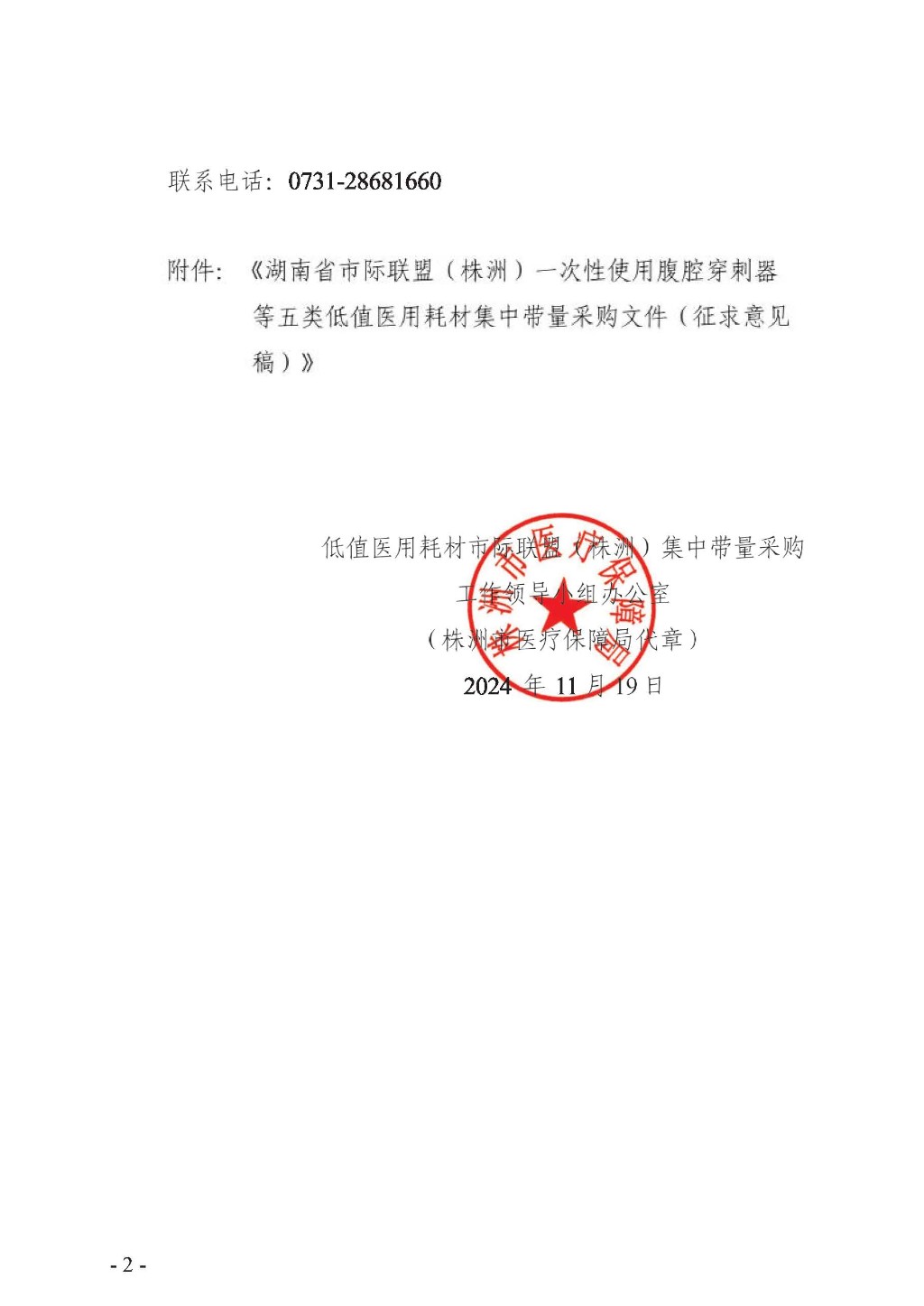 附件:湖南省市际联盟(株洲)一次性使用腹腔穿刺器等五类低值医用耗材集中带量采购文件(征求意见稿)